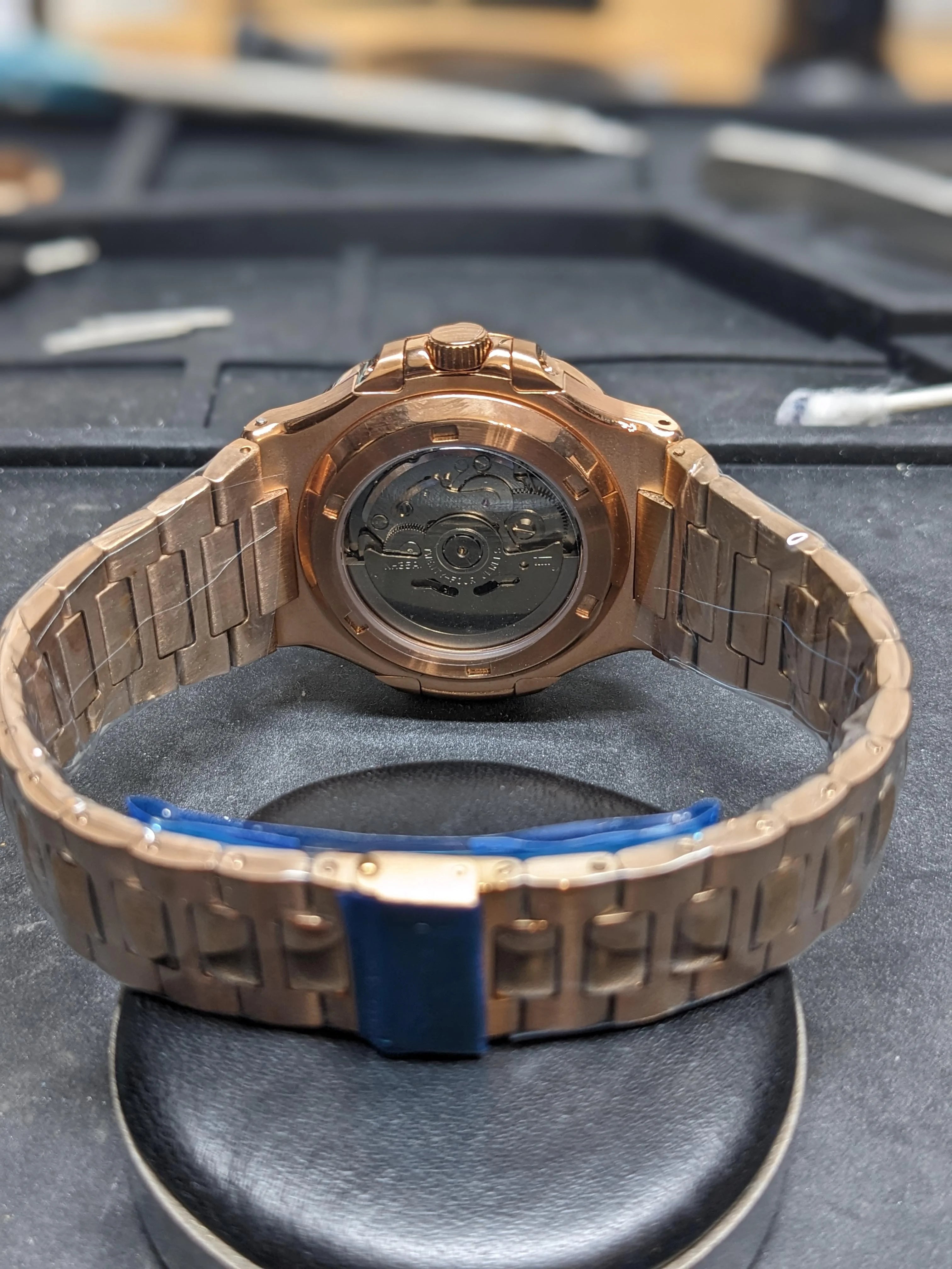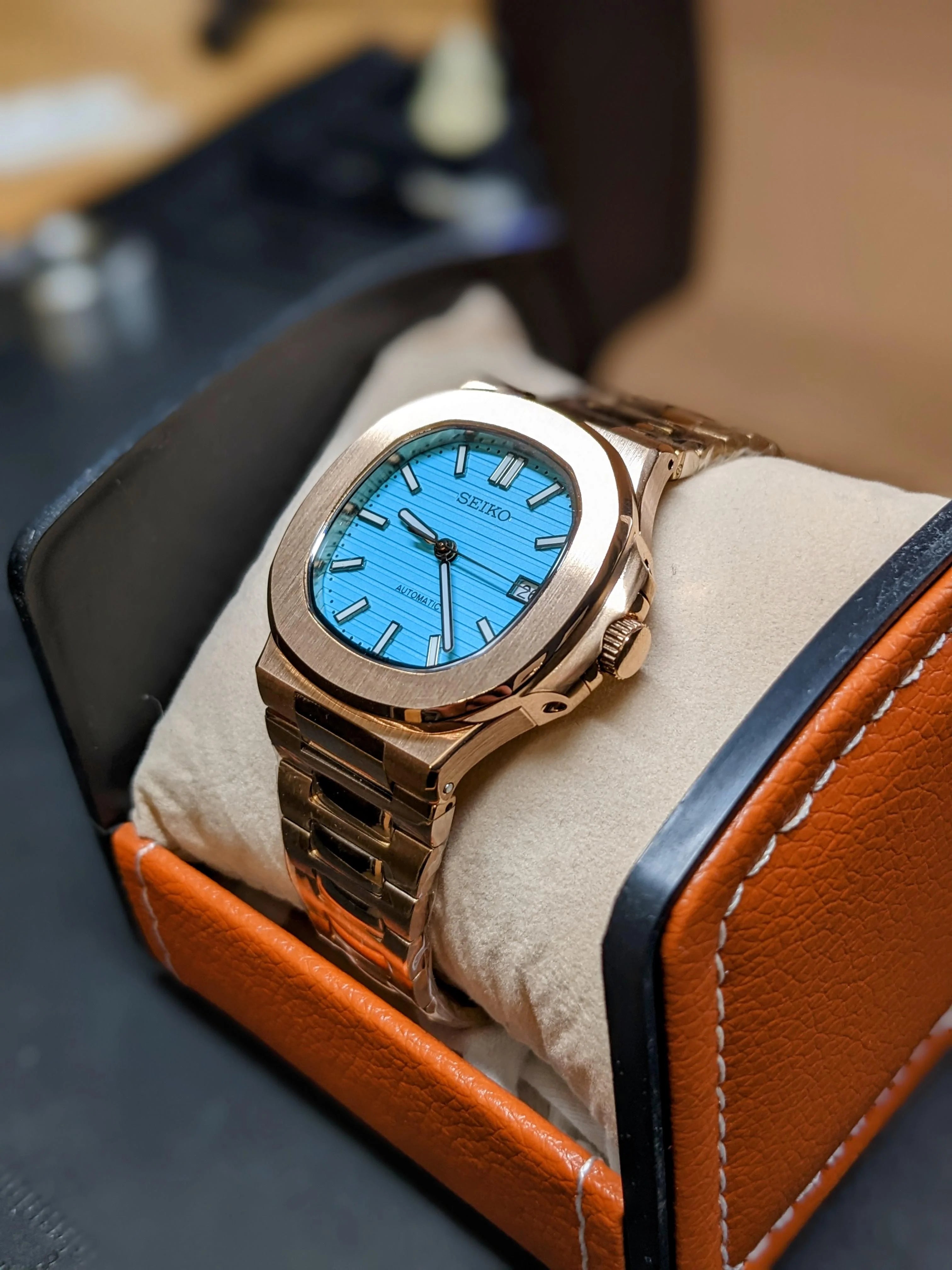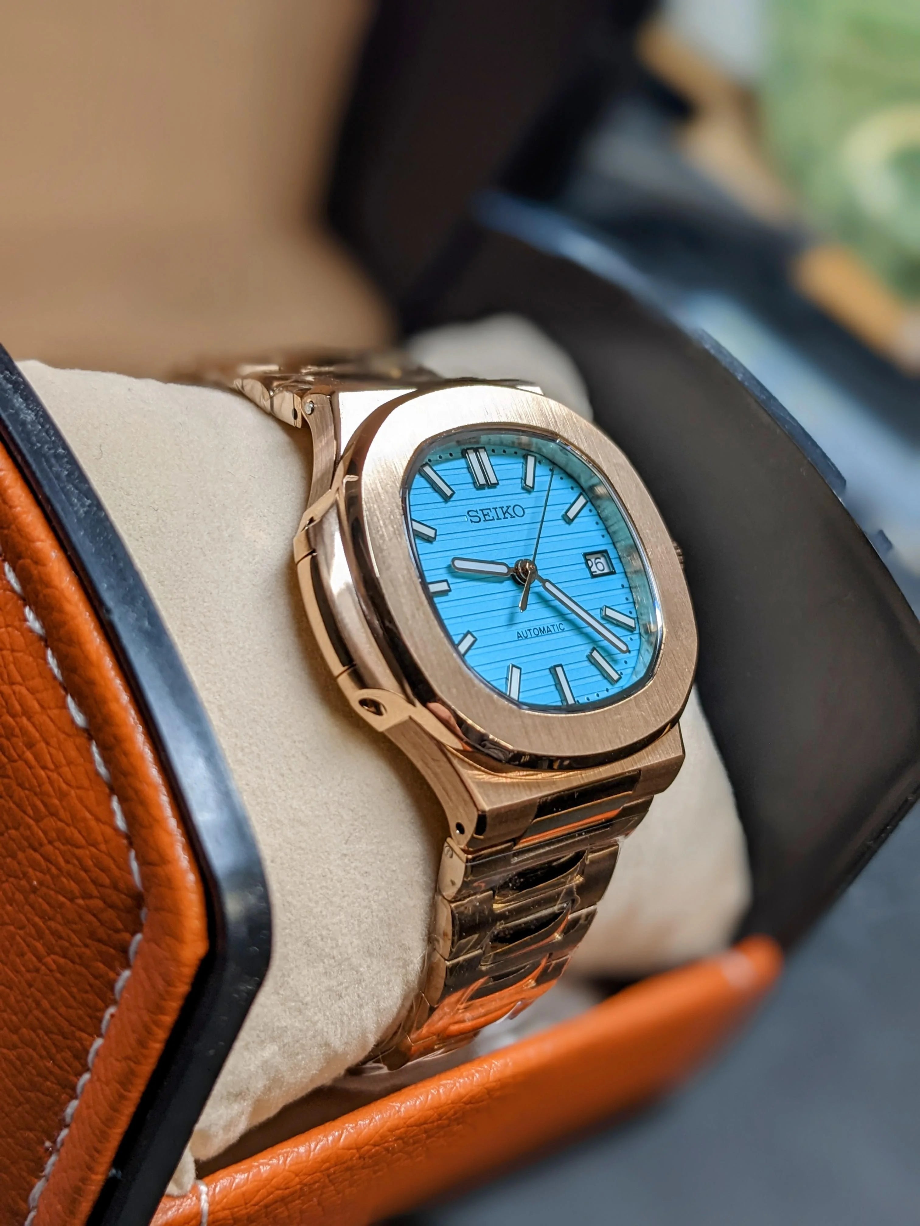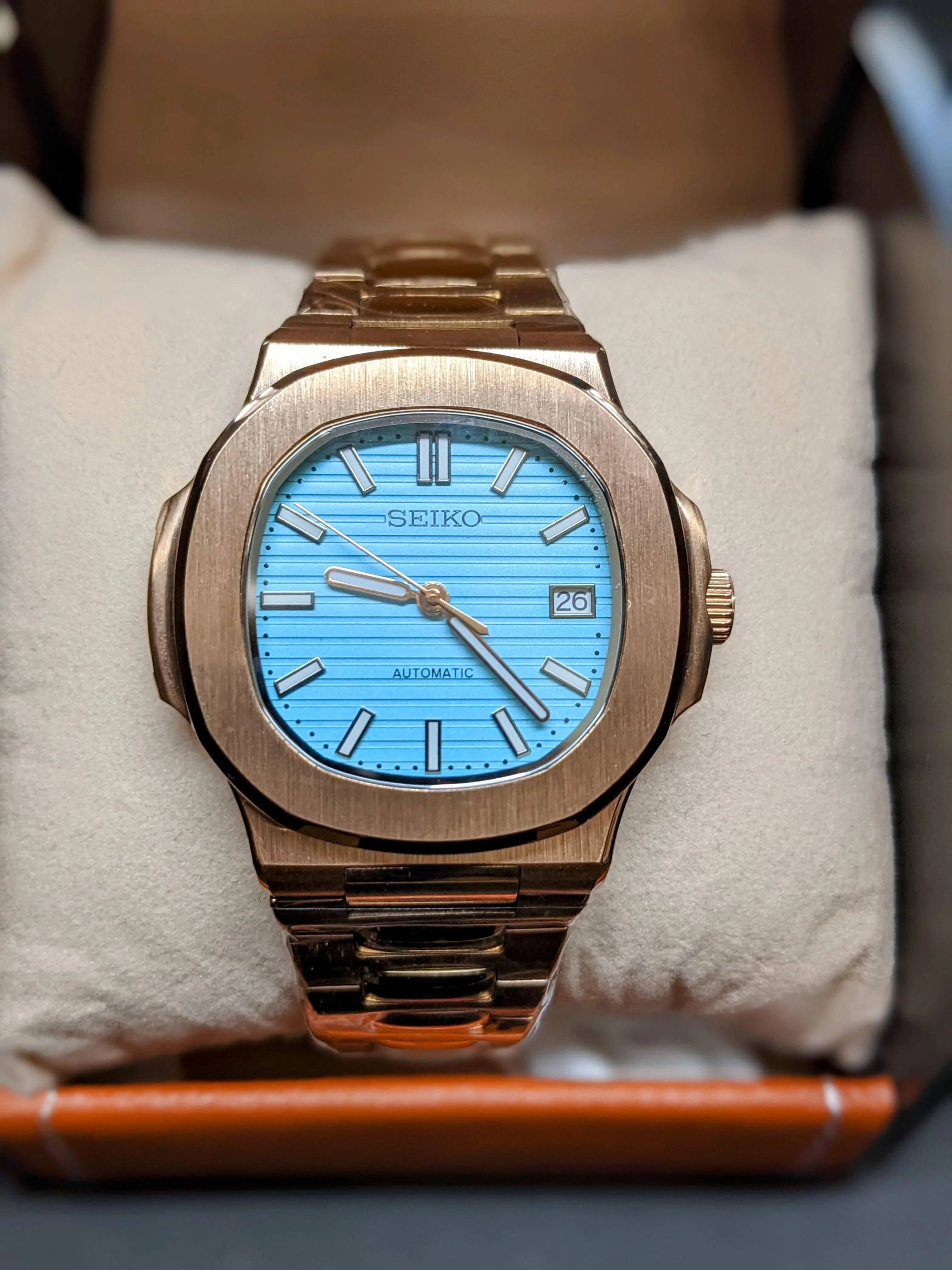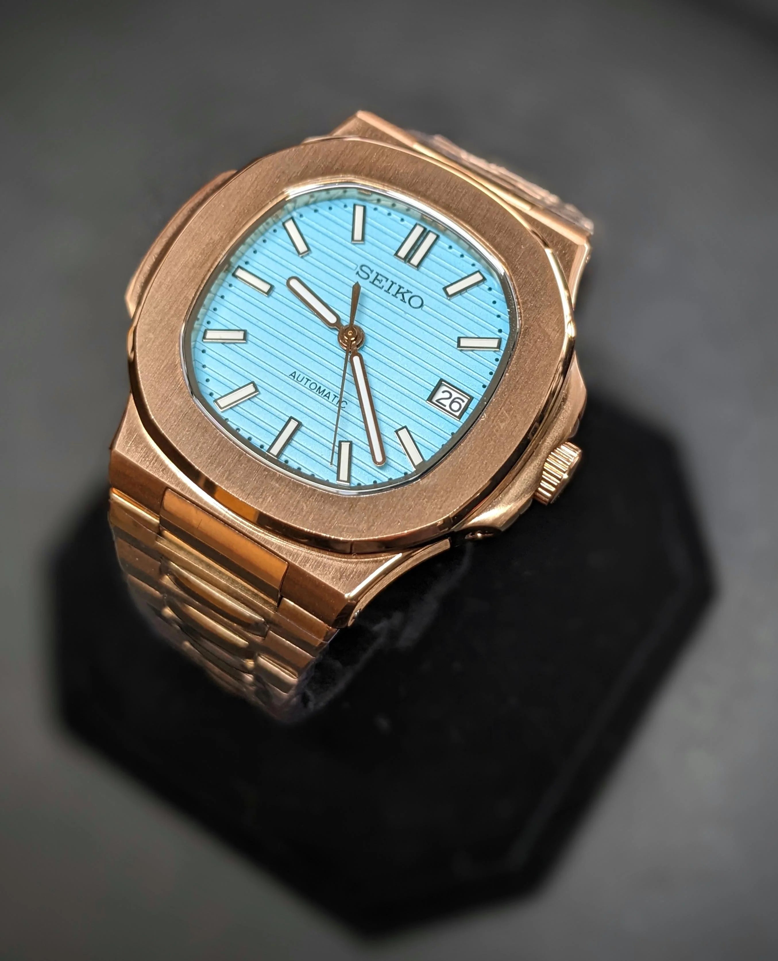 Custom Nautilus Mod: Rose Gold "Tiffany" - Seiko NH35 Auto - Sapphire/Exhibition