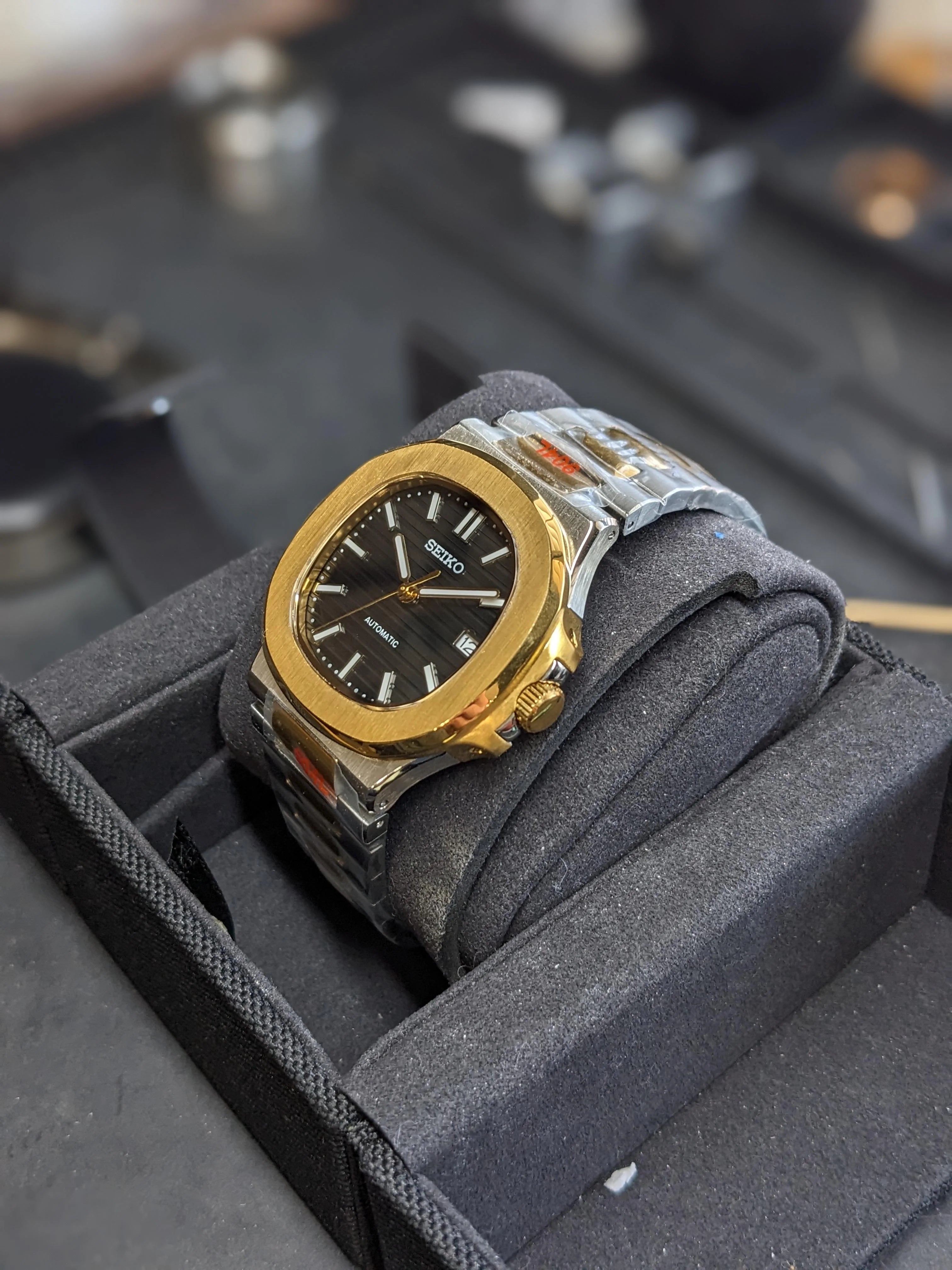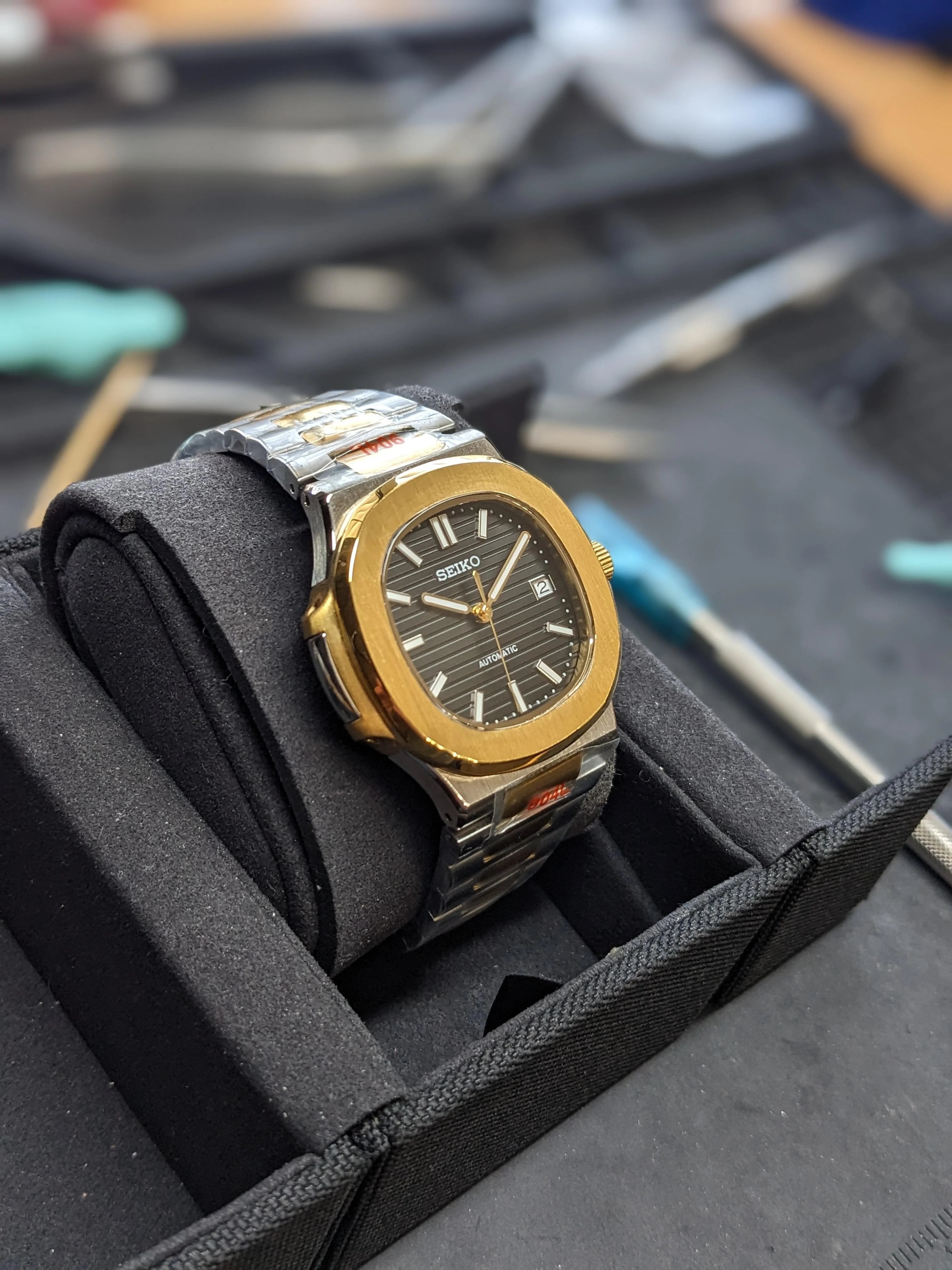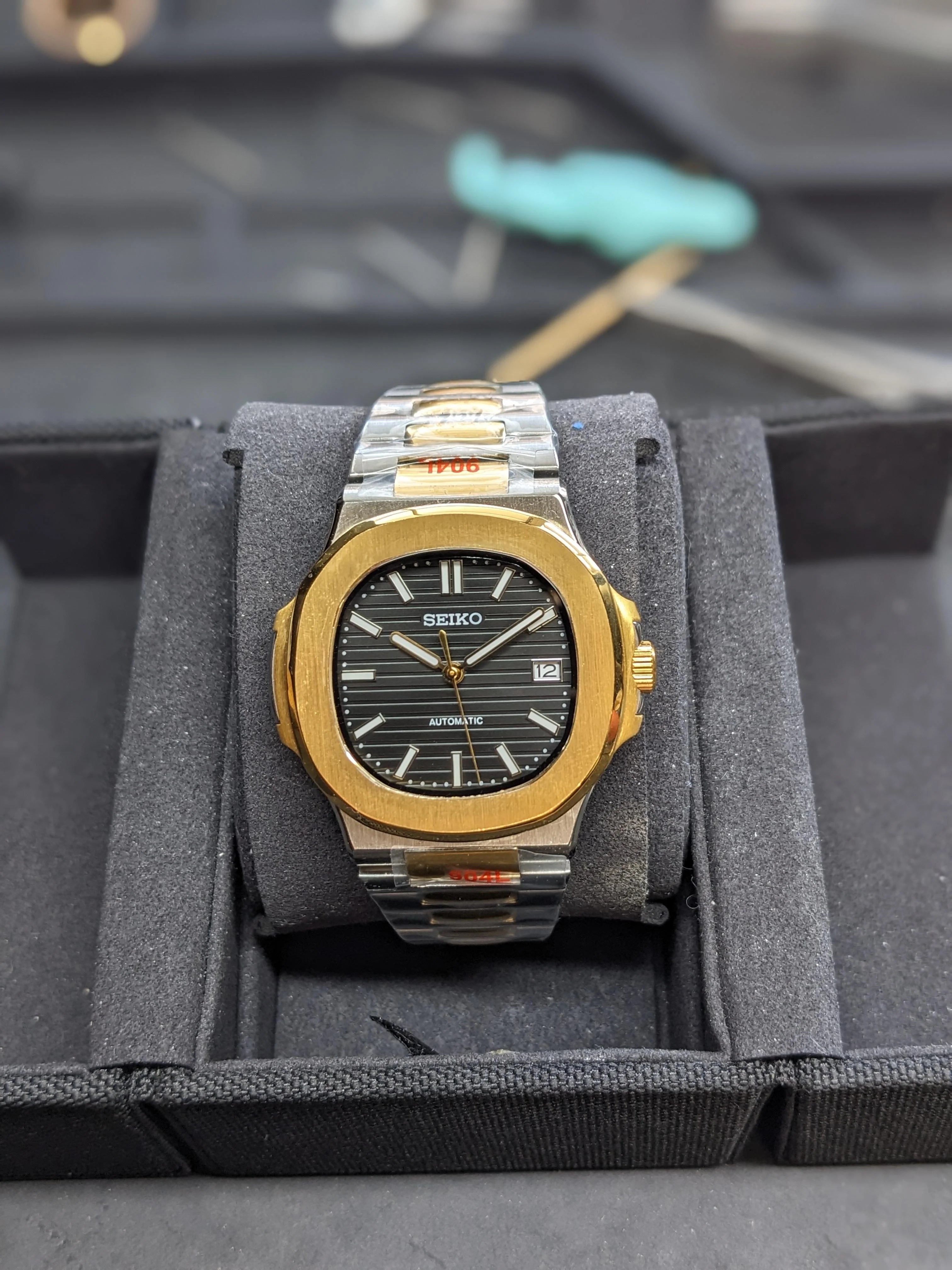 Nautilus Mod: Two Tone Gold Black Wave Dial - Seiko NH35 Automatic