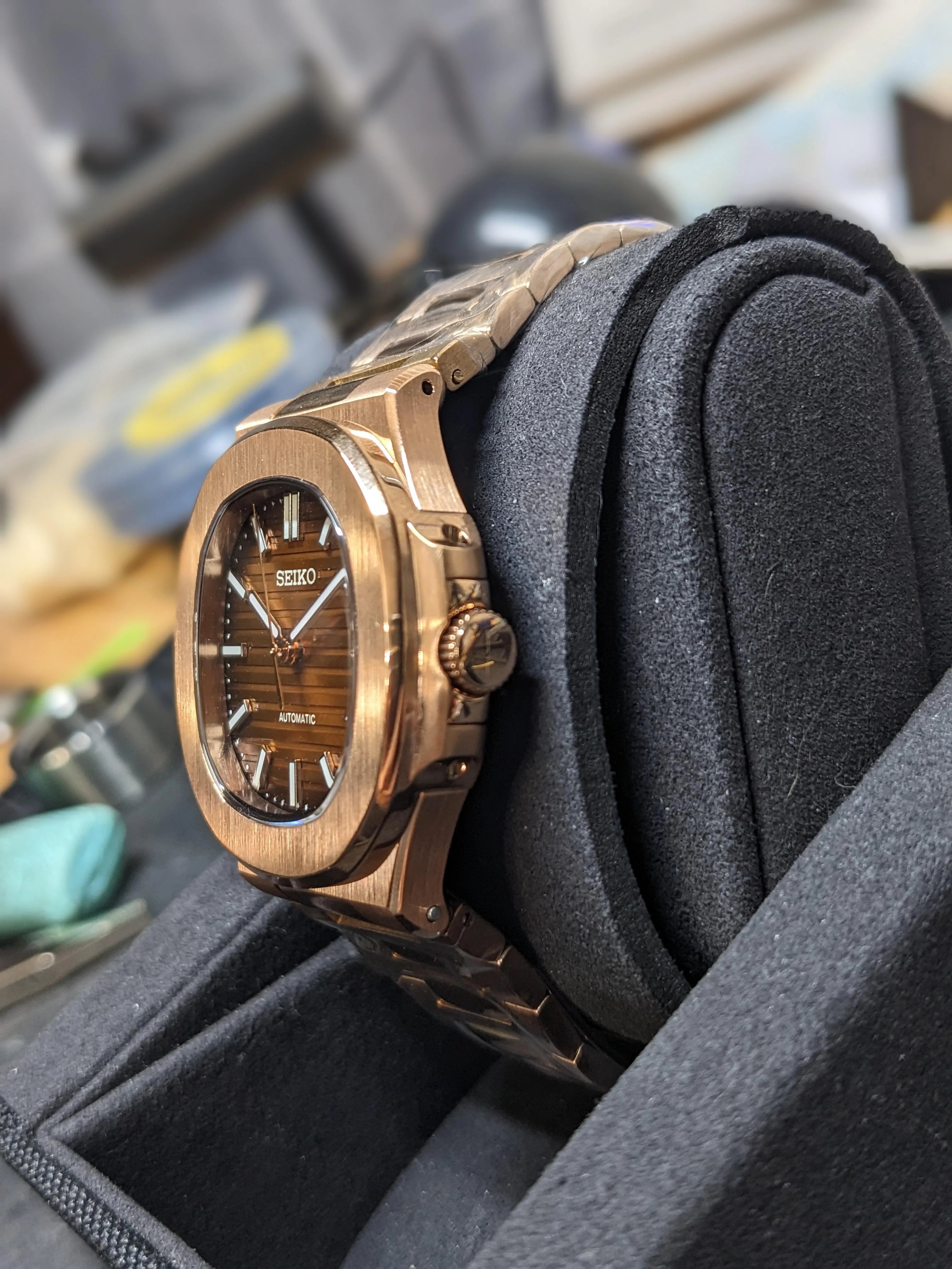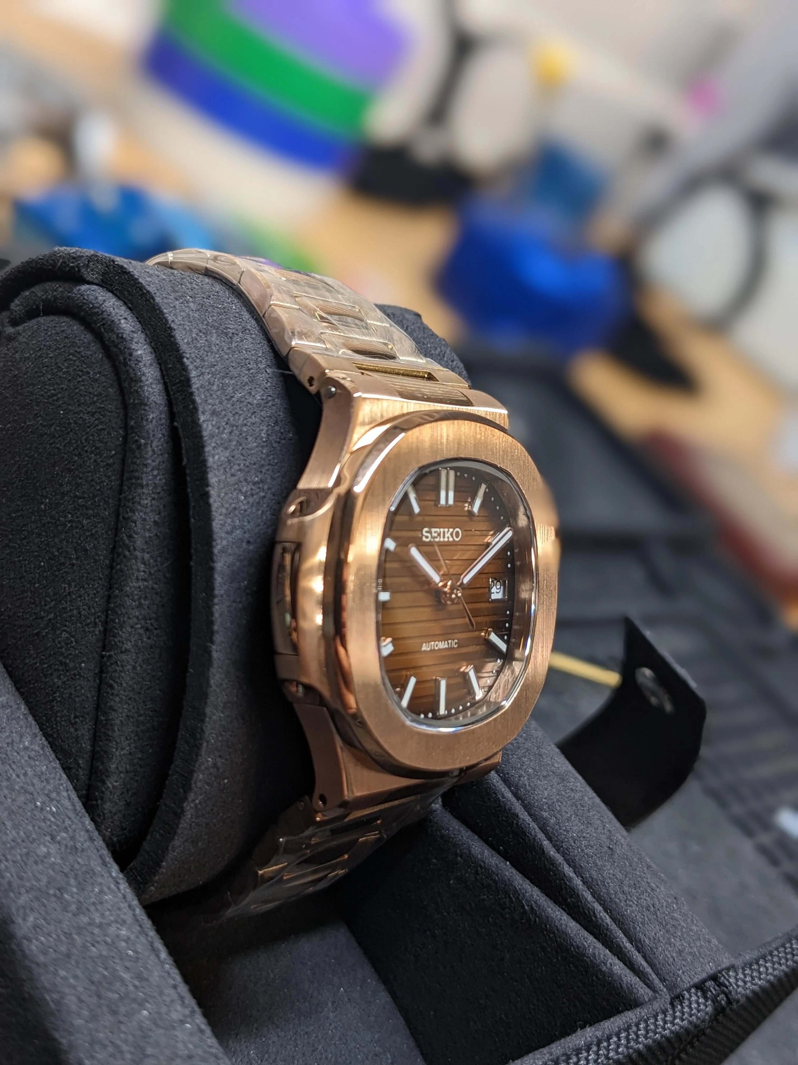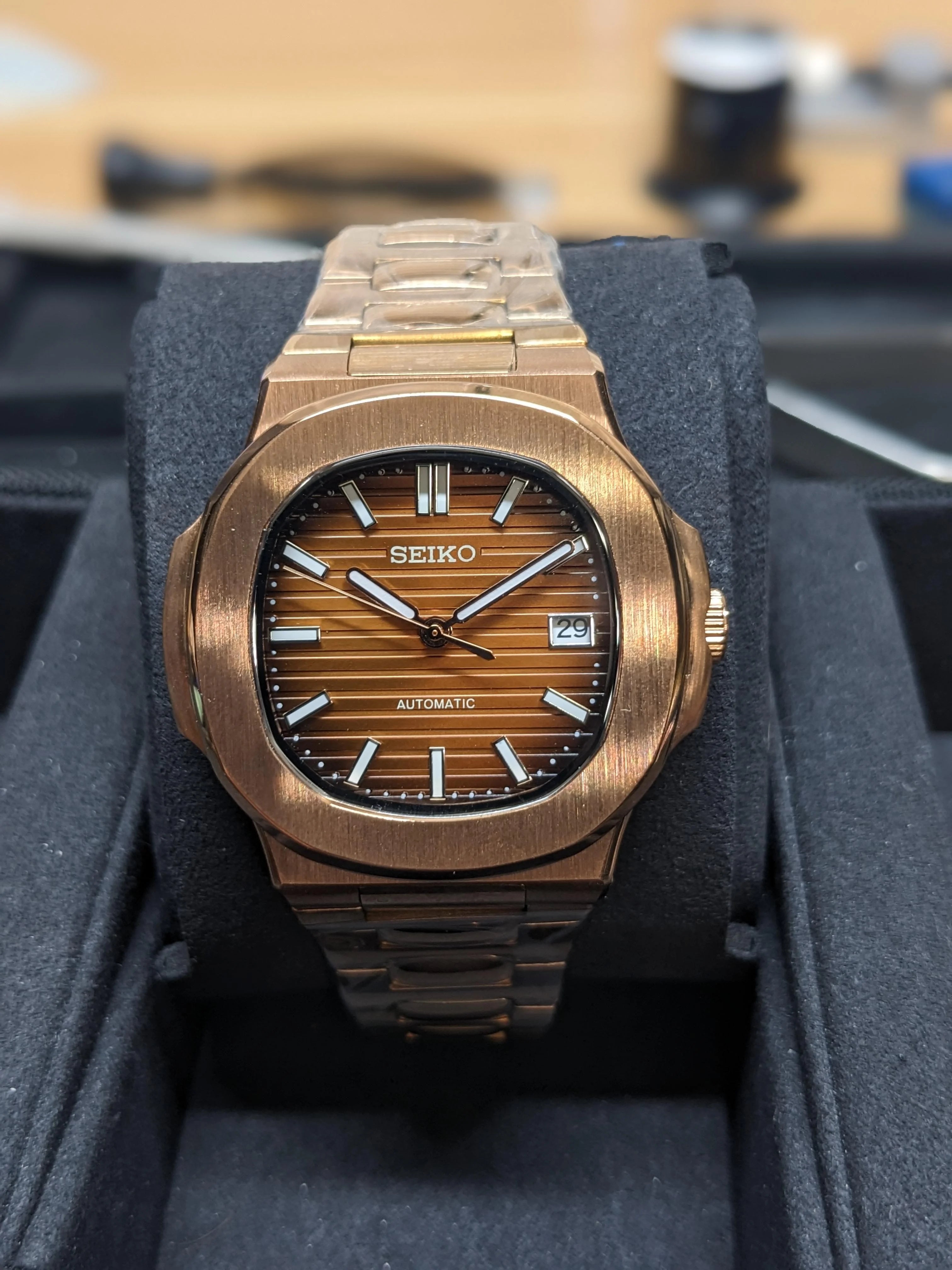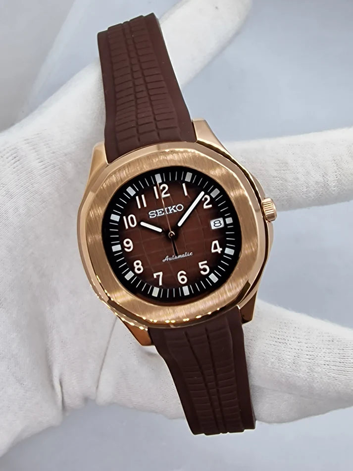 Nautilus Mod: Rose GoldCOFFEE Wave Dial - Seiko NH35 Automatic